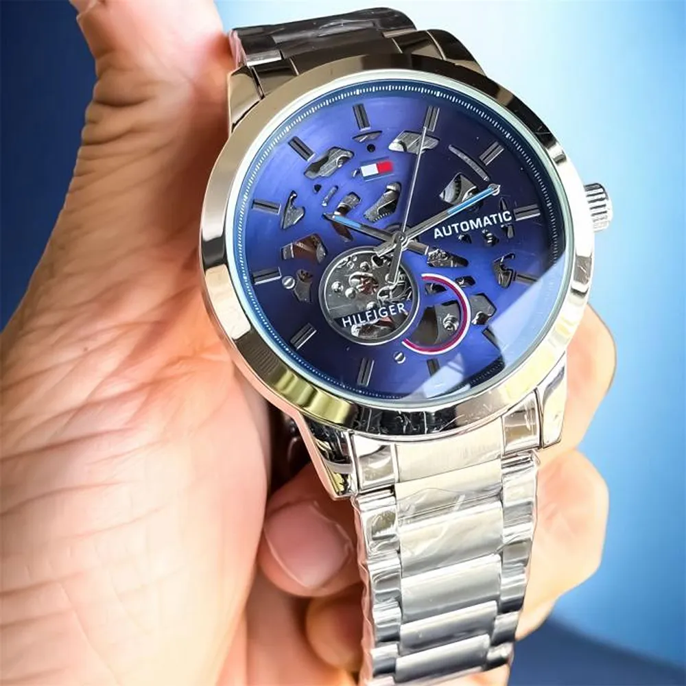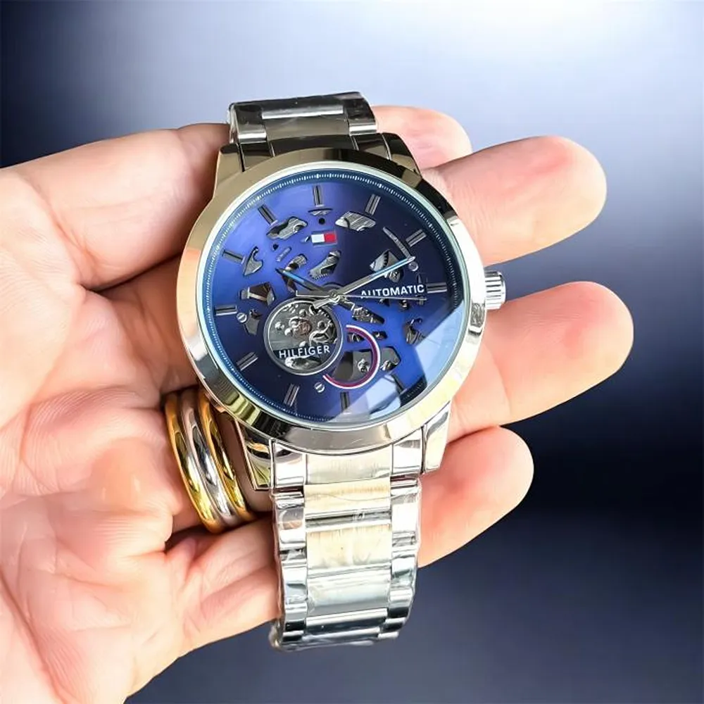 Luxury Tommy Auto Watch Silver Blue For Men